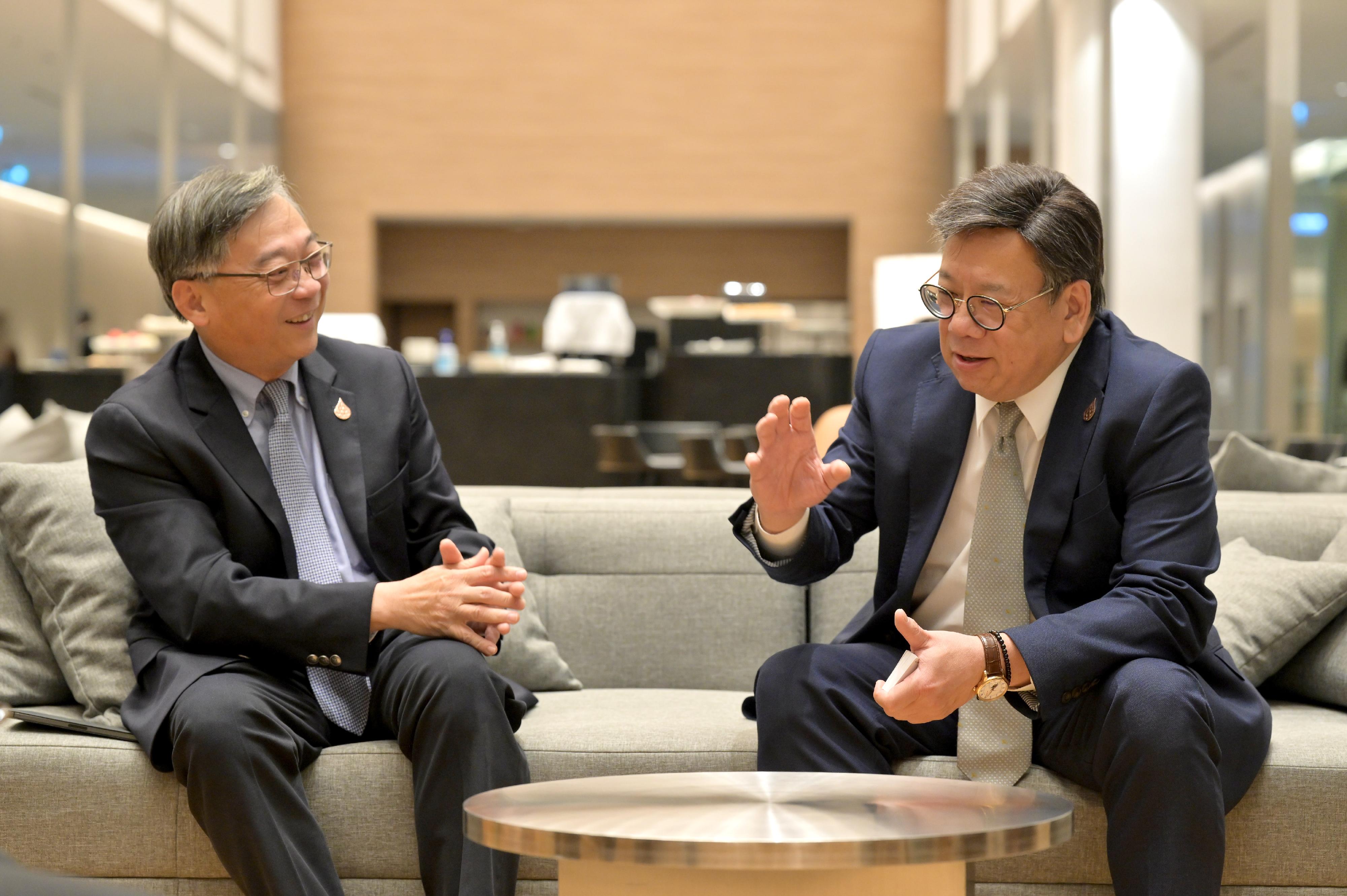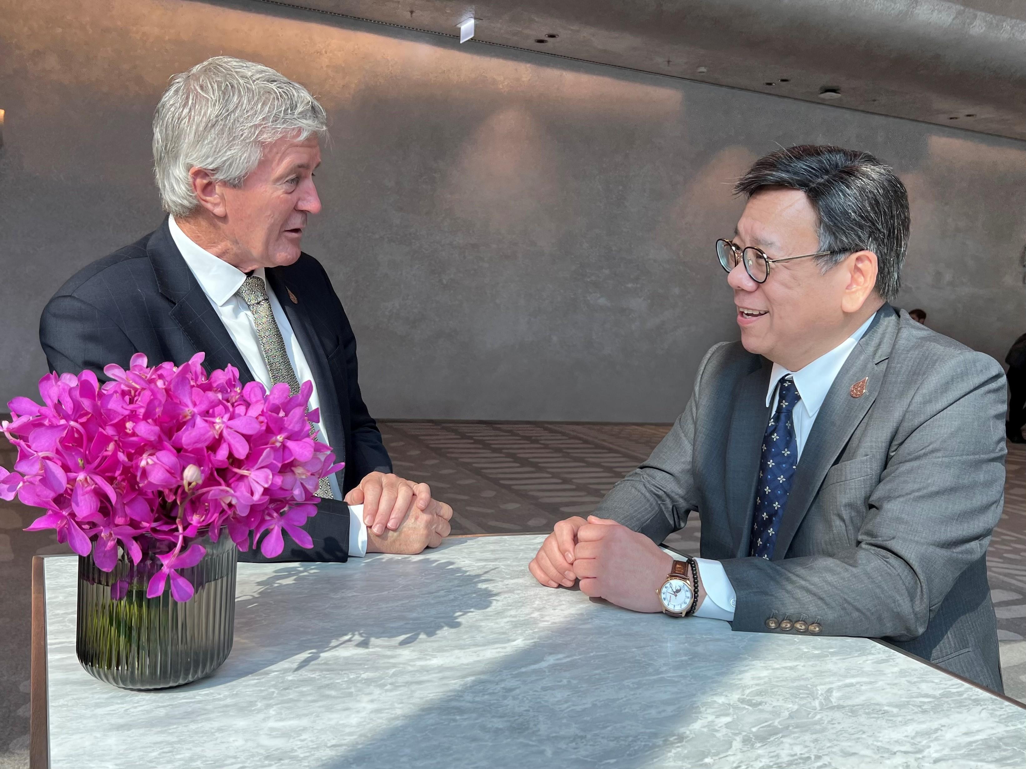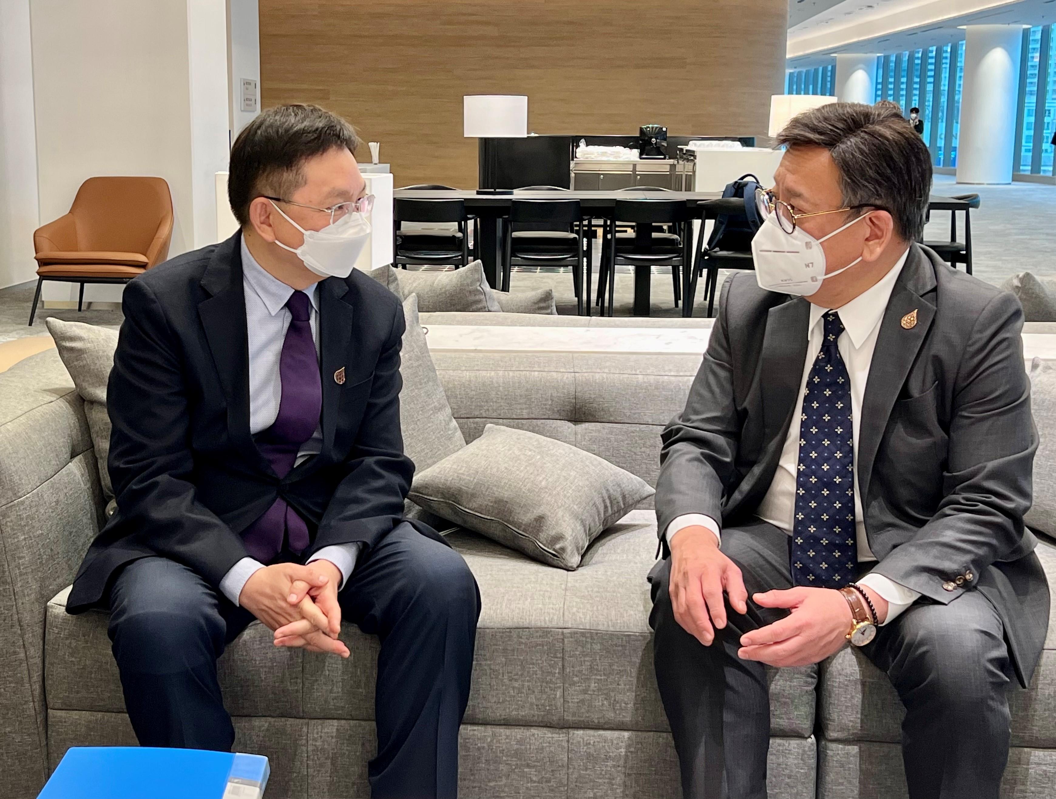 在部长级会议举行期间,丘应桦与国家商务部副部长凌激会面,向他介绍香港的最新经贸发展。他亦与新西兰贸易和出口增长部部长Damien O'Connor会面,就双边贸易和双方关注的议题交换意见。他昨日(十一月十六日)抵步后,与新加坡贸工部部长颜金勇会面,讨论贸易和经济议题。